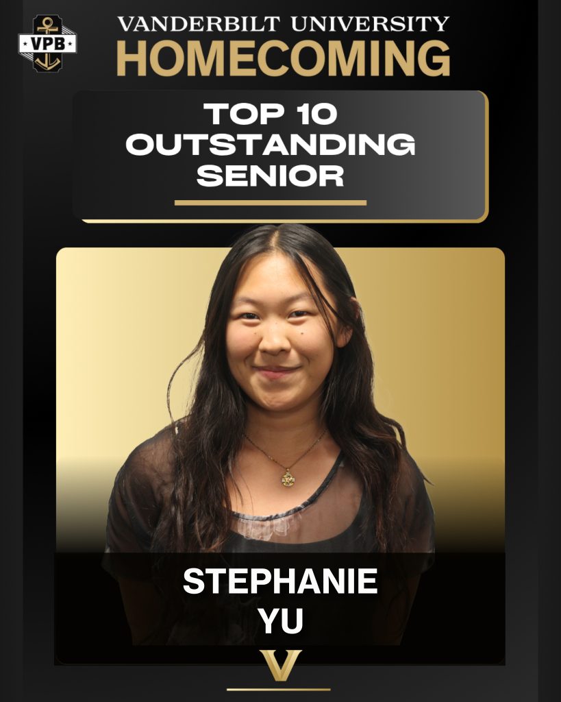 During halftime of the Vanderbilt vs. Auburn football game, we’ll announce and celebrate the student body’s choice for the 2025 Outstanding Senior Award! Join us as we recognize this year’s recipient for their exceptional leadership, service, and impact on the Vanderbilt community.